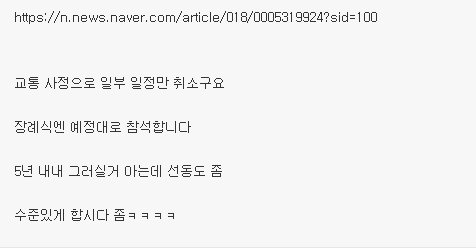 반면 엠엘비파크를 중심으로한 보수성향 커뮤니티에서는 대통령이 일부의 일정만 취소했을 뿐이며, 장례식에는