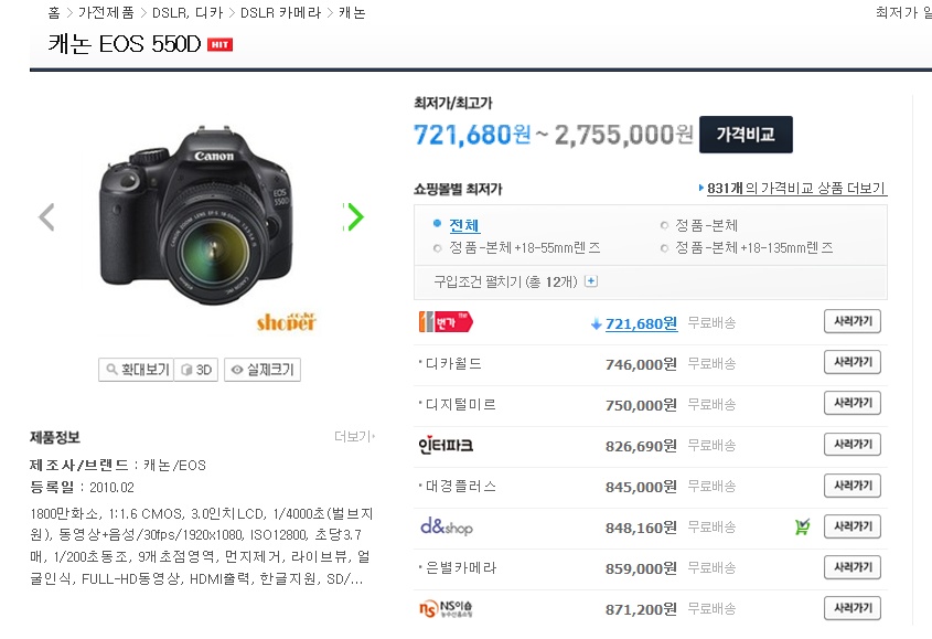 현재 서비스되는 인터넷 최저가서비스에는 정상적 구매가 가능한 최저가 정보가 없습니다. 디지털 카메라의 경우 사이트에 표시된 대부분 최저가 정보는 매장에 입고되는 입고가보다 낮은 판매가라고 보시면 됩니다.제가 이런말 하면 자칭 IT 고수라는 분들은 꼭 한마디 하십니다.
