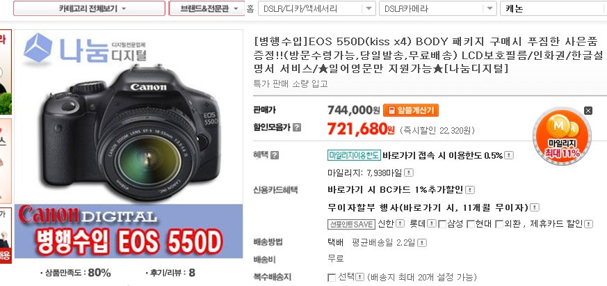인터넷 최저가로 등록된 업체는 550D 내수를 판매 할 때 현금기준으로 약 5만원의 순수 마진을 보지 않으면 제품을 판매 하지 않는다는 결론이 나왔습니다. 자 여기서 조금 차분히 생각해 볼 문제가 있습니다. 약 85만원의 매출을 올리는 상인이 가져가는 5만원의 마진이 과연 과하다고 생각하시나요?