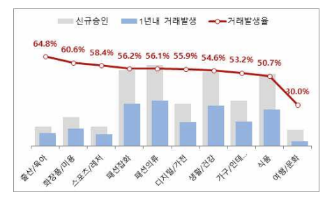 네이버가 자체 데이터를 통해 발표한 D-커머스 리포트 중 자료 일부입니다. 네이버 스마트스토어 창업 후 1년동안 단 1건이라도 매출이 발생한 비율은 약 50프로에 불과 합니다. 여행/문화 상품의 경우 30프로밖에 안됩니다. 부푼꿈을 안고 스마트스토어를 개설한 창업자 절반이상이 1년동안 1원도 판매하지 못한다는 뜻입니다.
