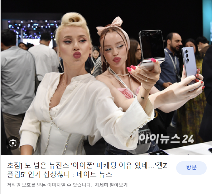 그런데 여기서 또 하나의 재미포인트가 등장합니다. 갑자기 국내 언론에서 도 넘은 뉴진스 아이폰 마케팅이라는 뉴스와 함께 뜬금없이 갤럭시 Z플립 5 인기가 심상찮다는 내용의 기사가 함께 송출하기 시작했습니다. 그러면서 기사내용 중 경쟁자인 애플은 무리수 마케팅을 펼쳐 눈살을 찌푸리고 있고., 뉴진스를 의 아이폰 PPL은 선을 넘은 과도한 노출로 논란에 휩싸였다고 전하기도 했습니다. 참고로 삼성전자 역시 과거 2014년 아카데미 시상식에서 영화배우들 이삼성폰으로 셀카를 찍는 장면을 통해 간접 광고효과로 큰 재미를 본 경험이 있었습니다. 더 말 안 해도 아시겠죠?