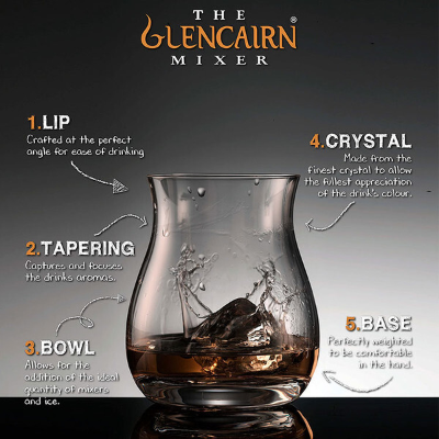 클랜캐런 크리스털은 위스키의 향을 극대화시키기 위해 2001년, 증류소에서 일하는 몰트마스터들과 협업을 해서 글렌캐런 글라스를 개발했습니다. 처음에는 바나 주류업계에만 소량으로 공급되었는데 손님들로부터 지금까지 존재한 어떤 위스키잔보다 이 글렌캐런 글라스로 마시는 위스키가의 향이 탁월하다는 평을 듣고 본격적으로 홍보와 보급에 힘을 쓰기 시작했습니다. 그러다가 2006년 영국 퀸즈어워드에서 상을 받게 되면서 위스키전용잔이라고 제대로 세상에 알려지게 되었습니다.